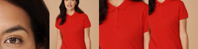 100% ringspun cotton.* This item runs small in comparison to some other brands. Please check sizing before decoration. Ladies fit. Ribbed collar and cuffs with contrast double stripe tipping. Taped neck. Three self colour button placket. Side vents. Twin needle hem.