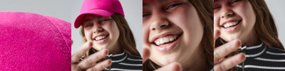 100% cotton twill. Seamless, centralised front panel. Child safe secure button. Pre-curved peak. Fold-up ear and neck protection. Elasticated size adjuster.