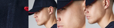 100% brushed cotton twill. 5 panel. Stitched ventilation eyelets. Pre-curved peak. Contrast panel design with piped trim. Rip-Strip™ size adjuster.