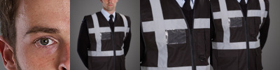 Front zip closure. Two reflective bands around the body and one over each shoulder. Left chest media pocket. Right chest ID pocket. Pen pockets and D-ring. Two front pockets with flaps.