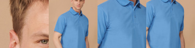 65% polyester/35% cotton. Stand up collar. Taped neck. Three self colour button placket. Reinforced shoulder seams. Ribbed cuffed sleeves. Twin needle stitching. 60°C wash.