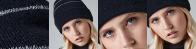 100% soft touch acrylic. Double layer knit. Cuffed design. Enhanced visibility reflective stripes.