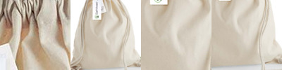 100% organic cotton canvas. Heavy rope drawcord closure. Capacity 13 litres.