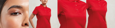 Easy care moisture wicking fabric. Ribbed collar and cuffs. Taped neck. Three self colour button placket. Panelled detail for a more fitted shape. Side vents.