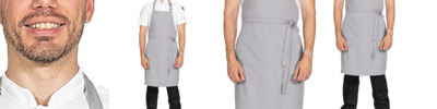 100% cotton. Self fabric neckband with sliding, adjustable buckle. Webbing fabric ties. Width 90cm. Length 102cm. Industrial or domestic wash 65°C. Branded tab on left.