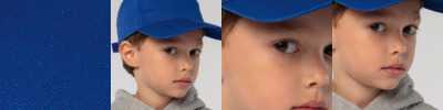 100% thick brushed cotton. 6 panel. Six ventilation eyelets. Contrast sandwich peak on certain colours. Size adjuster with metal buckle.