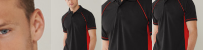 100% polyester Coolplus® piqué. Wicking fabric keeps you dry and comfortable. Textured piqué fabric. Flat knit collar. Taped neck. Two self colour button placket. Contrast piping on raglan seams and cuffs. Contrast side panels. Side vents. Twin needle hem.