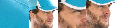 65% polyester/35% cotton. 5 panel. Stitched eyelets. Seamless, stiffened front panel. Curved peak. Tear release size adjuster. Tear out label. Branded inner upstand.