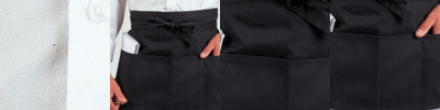 65% polyester/35% cotton. Three front pockets. Self fabric ties. Width 60cm. Length 30cm. Industrial or domestic wash 65°C. Branded tab on left.