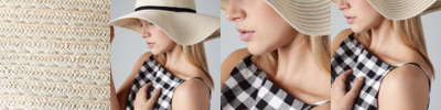 100% paper straw. Polyester sweatband. Domed crown. Wide brim. Tear out label.