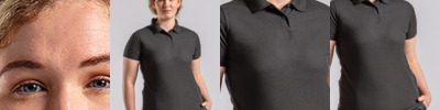 100% polyester. Spun polyester piqué knit. Soft cotton feel fabric. Ladies fit. Ribbed collar. Taped neck. Two self colour button placket. Spare button. Twin needle stitching. 60°C wash.