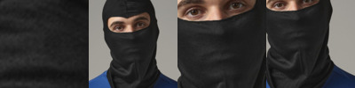 100% polyester microfibre. Open face balaclava. Lightweight. Breathable. Flat seams for comfort. Machine washable/non iron.