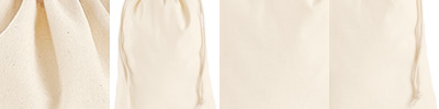 100% cotton. Rope drawcord closure. Capacity 12 litres.
