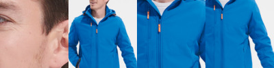 Three layer stretch soft shell. 94% polyester/6% elastane outer. Waterproof 8000mm and breathable TPU membrane. Windproof. Micro fleece inner layer. Detachable adjustable peaked hood. Full length zip with inner zip guard. Detachable sleeves. Right chest zip pocket. Two front zip pockets. Contrast zip pulls on main and chest pocket zips. Adjustable cuffs. Drawcord hem.
