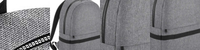 600D polyester. Soft touch lining. Padded main zip compartment. Front slip pocket. Laptop compatible up to 13". Can be decorated front and rear. Tear out label. Capacity 1.5 litres.
