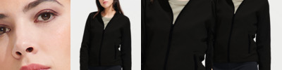 Two layer stretch soft shell. 96% polyester/4% elastane outer. Polyester fleece lining. Showerproof. Shaped fit. Collar high full length zip. Two front zip pockets. Open cuffs and hem. Curved drop hem.