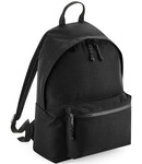 100% recycled 600D polyester. Grab handle. Padded adjustable shoulder straps. Cord zip pulls with reflective detail. Main zip compartment. Front zip pocket. Tear out label. Capacity 18 litres.