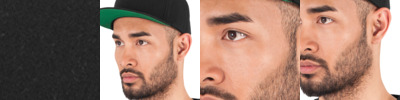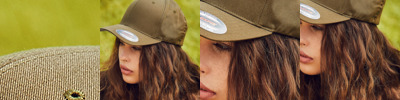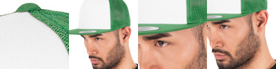 100% cotton. 5 panel. High profile. Stitched ventilation eyelets. Structured front panel. Flat peak. Black and navy have green underpeak. Plastic snapback size adjuster. Authentic visor sticker.