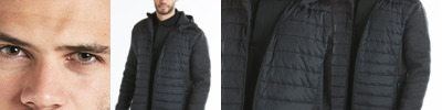 Nylon outer. Polyester weft knit hood, sleeves and body sides with brushed back. Insulatex thermal insulation. Grown on hood with bound opening. Full length zip with chin guard and inner zip guard. Two inner pockets. Two front zip pockets. Interchangeable branded zip pulls. Elasticated bound cuffs and hem. Branded tab on right side seam.