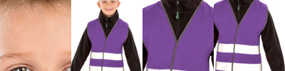 100% polyester. Grey polyester bound edges. Tear release front closure. Two reflective bands around the body. Generous in size allowing to be worn as an over garment. Tear out label.
