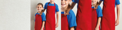 100% polyester. Polyurethane coating. Easy care fabric. Waterproof. Self fabric adjustable neckband with snap release. Self fabric 50cm ties. Industrial laundry 85°C. Domestic wash 60°C.