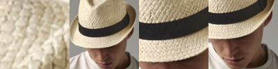 100% paper straw. Polyester sweatband. Hand made. Tear out label.
