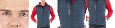On-trend padded plus softshell combination. Supersoft, lightweight and warm. Ready to brand. Quiet to wear. Contrast colour pocket zips. Full front zip with chin guard. Stand-up padded collar. Padded body. Soft bound armhole. Black zip pulls. Hangtag. Oeko-Tex certified.