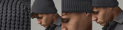Denim bucket hat. Denim look in washed-out light blue or black grey. Circumferential brim. Decorative stitching. Stability is provided by an extra sewn-in circumferential band.