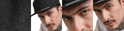 Medium buckram. Matching hook and loop closure. Matching undervisor. Soft brushed cotton fabric.