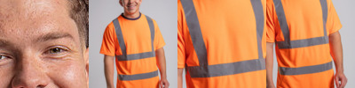 Certified EN ISO 20471:2013+A1:2016. RIS-3279-TOM ISSUE 1:2016 (Orange only). HV Orange/Navy & HV Yellow/Navy - Class 2. Ribbed contrast colour collar. Twin-needle stitching on shoulder. Twin-needle stitching on sleeve and bottom hem. Over shoulder and around body reflective tapes. Around body tape finishes before the side seam for comfort and ease of fit.