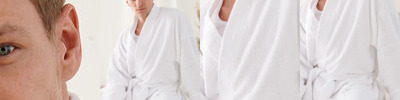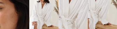 Terry towelling robe, luxurious feel, two deep pockets, hanging loop in collar. Matching belt.
