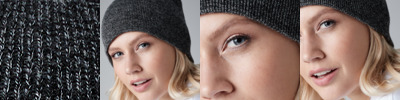 100% soft touch acrylic. Double layer knit. Cuffed design. Self colour pom pom. Tear out label.