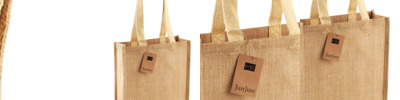 100% jute. Cotton carry/shoulder straps (60cm long). Capacity 10 litres.