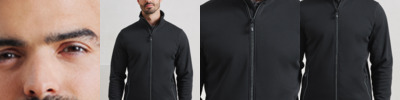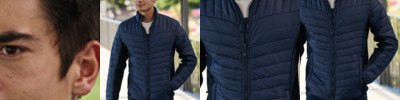 100% recycled polyester. Spun dyeing manufacturing process. Easy care fabric. Modern fit. High neck cadet collar. Full length contrast zip. Two contrast front zip pockets.