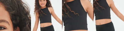 93% cotton/7% elastane. Single jersey. Racer front and back neckline. Cropped length. Twin needle stitching. Tear out label.