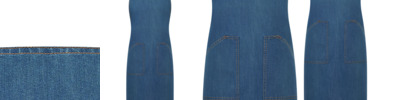 70% polyester/30% cotton. Easy care fabric. Three front pockets. Self fabric 95cm ties. Width 70cm. Length 36cm. Contrast stitching on blue denim and indigo denim. Wash 60°C. Tear out label.