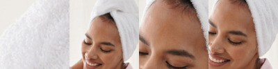 100% cotton terry towelling. Two panel hair wrap. Elastic loop for fastening. Excellent absorbency qualities.