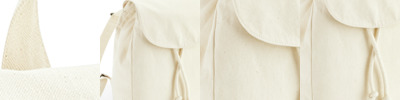 100% organic cotton canvas. Premium heavyweight fabric. Grab handle. Self fabric adjustable shoulder straps. Fold over flap with press stud. Rope drawcord closure. Capacity 5 litres.