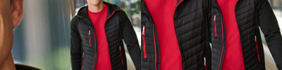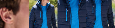 90% polyester/10% elastane. Polyamide panels. Recycled Warmloft insulation. Showerproof and windproof. Grown on adjustable hood. Power stretch hood, sleeves and sides. Full length contrast zip with chin guard and inner storm flap. Right chest zip pocket. Two front pockets. Stretch bound cuffs. Cut out label. Ideal for screen, transfer and vinyl printing.
