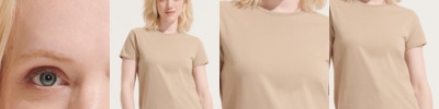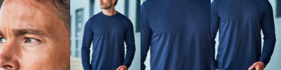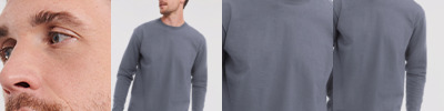 50% cotton/50% polyester. Single jersey. Ribbed collar and sleeves. Taped neck and shoulders. Side seams. Twin needle stitching. 60°C wash.