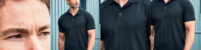 50% cotton/50% polyester. Ribbed collar and cuffs. Taped neck. Three self colour button placket. Taped side vents. Twin needle stitching. 60°C wash.