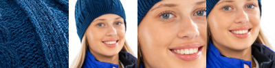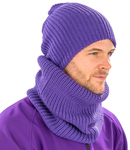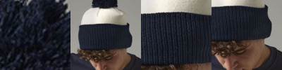 100% acrylic. Windproof. Chunky knit. Longer length. Foldable hem. Self colour pom pom.