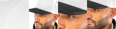 100% acrylic twill. 6 panel. Contrast peak with stitched eyelets and button. Flat peak. Snapback size adjuster. Authentic visor sticker. Retro style. Tear out label.