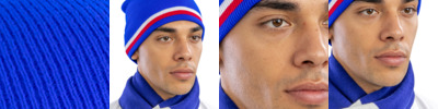 100% acrylic. Windproof. 6 gauge knit. Stripe knit in national colourways. Solid colour inner.