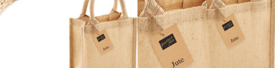 Laminated jute. Cotton carry handles (30cm long). Capacity 4 litres.