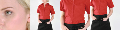 65% polyester/35% cotton. Two front pockets, inner pocket has tear release closure. Self fabric ties. Width 84cm. Length 40cm. Industrial or domestic wash 65°C. Branded tab on left.