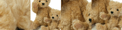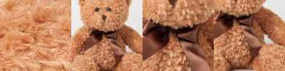- Light brown coloured bean filled bear with blue tartan ribbon.