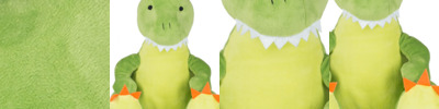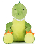100% polyester. Soft plush green dinosaur. Sewn eyes. Contrast felt decoration. Light green coloured panel on tummy and feet. Removable inner pad (body only). Zip access for decoration onto front panel. Suitable for embroidery, print and sublimation.