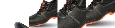 Leather upper. Mesh lining. EN ISO 20345: 2011 S1P SRA. Steel toe cap (200 Joules). Steel midsole. Waterproof and oil resistant. Padded collar and tongue. Comes with spare laces - solid orange and solid black.