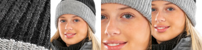 100% soft spun acrylic. Heavy ribbed knit. Cuffed design. Removable faux fur pom pom. Tear out label.